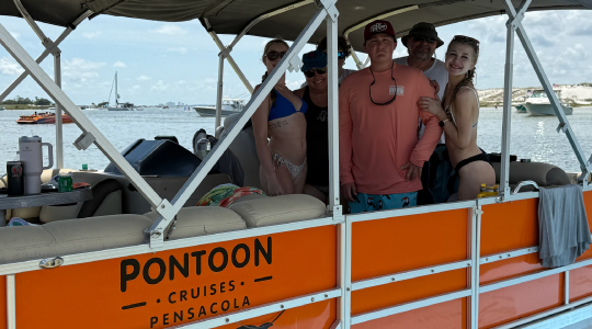 Our private, captained pontoon charters let you sit back, relax, and experience the beauty of Pensacola Bay, Santa Rosa Sound, and the Gulf Coast. With flexible cruise options and a skilled, Coast Guard-certified captain at the helm, your day on the water will be safe, stress-free, and full of adventure.